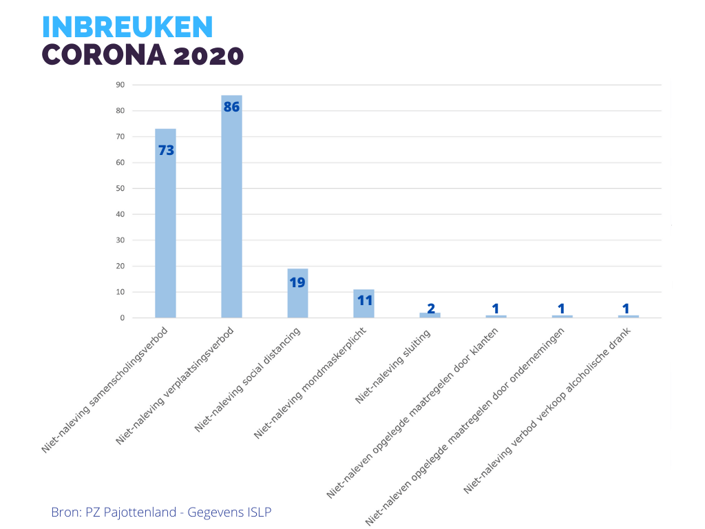 In de periode van 14 maart 2020 tot en met 31 december 2020 werden er 194 Corona gerelateerde pv’s opgesteld in de politiezone Pajottenland.