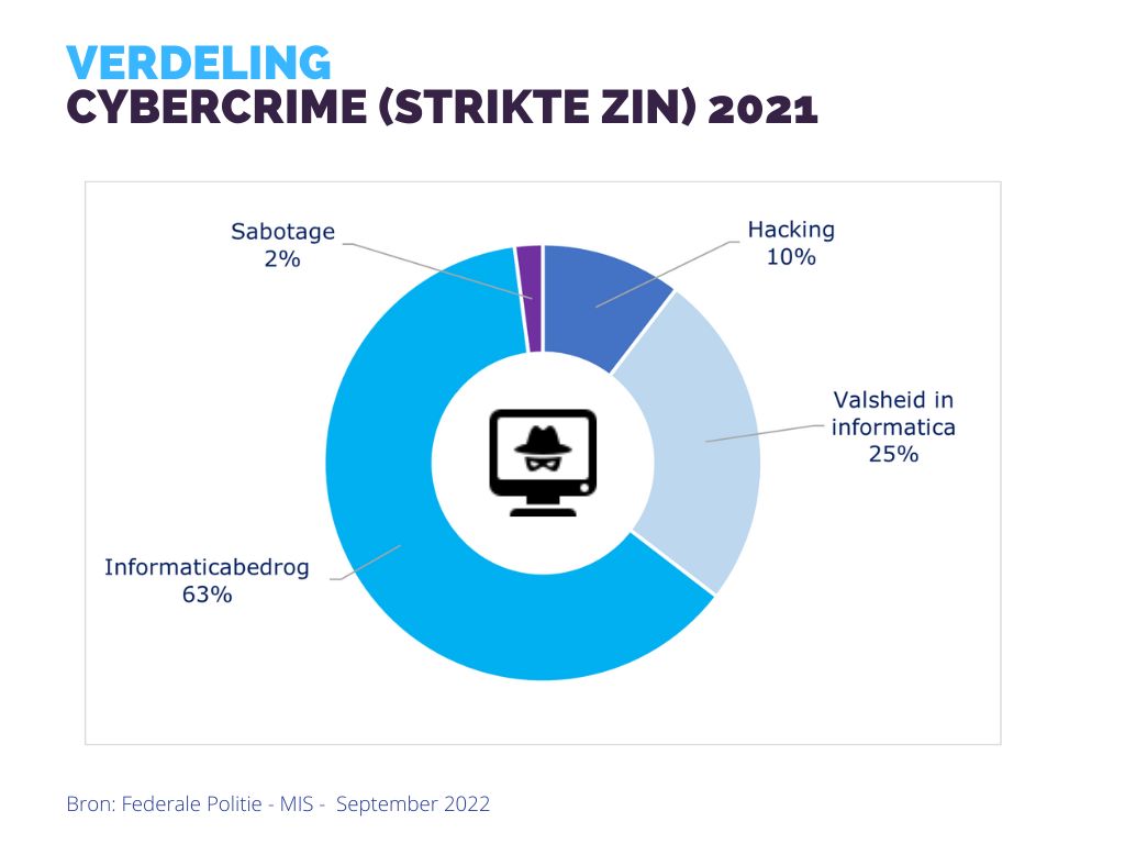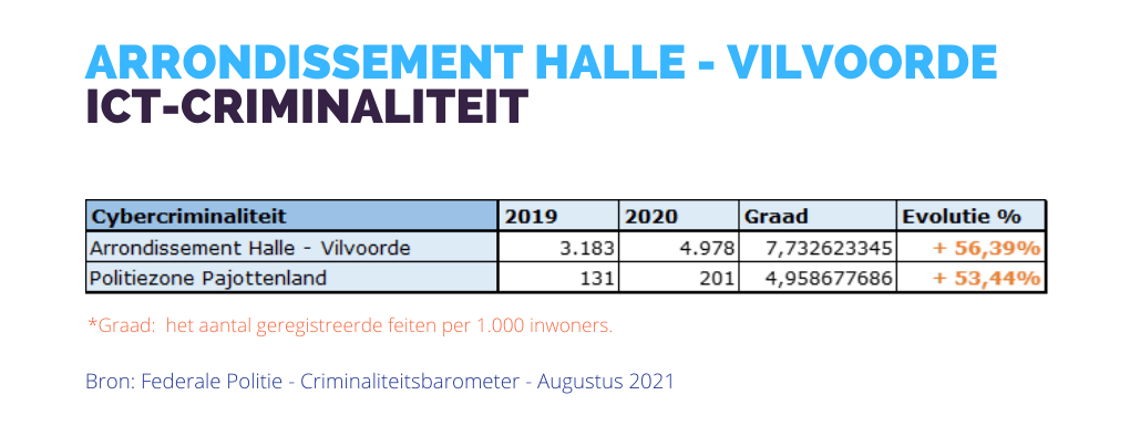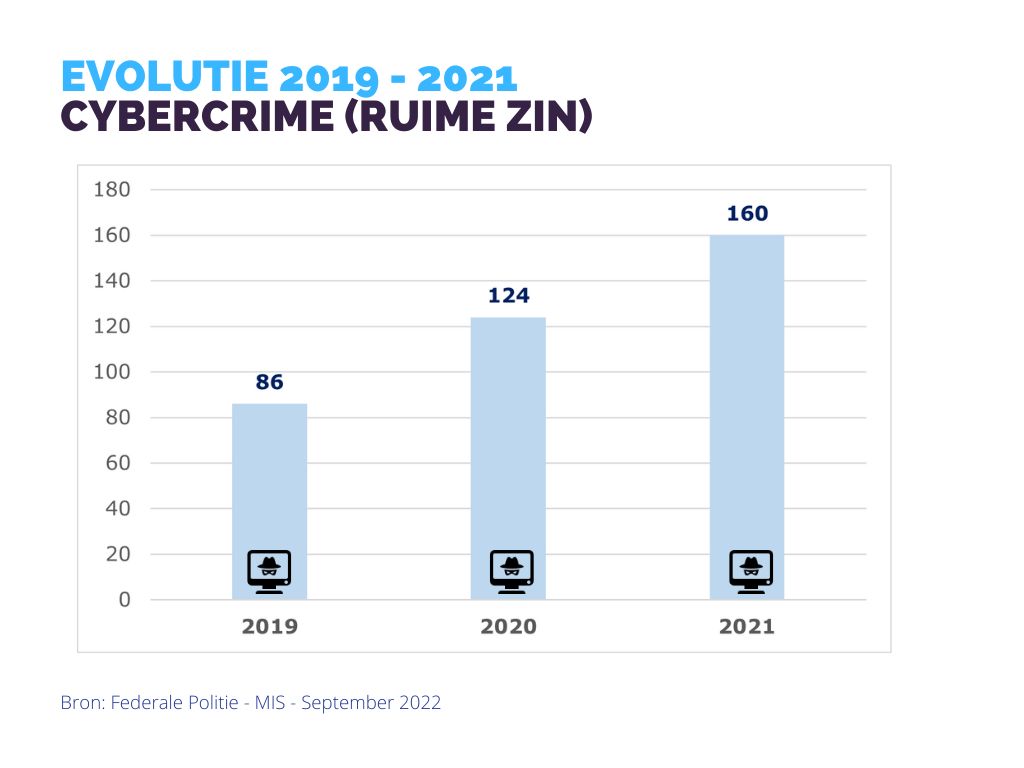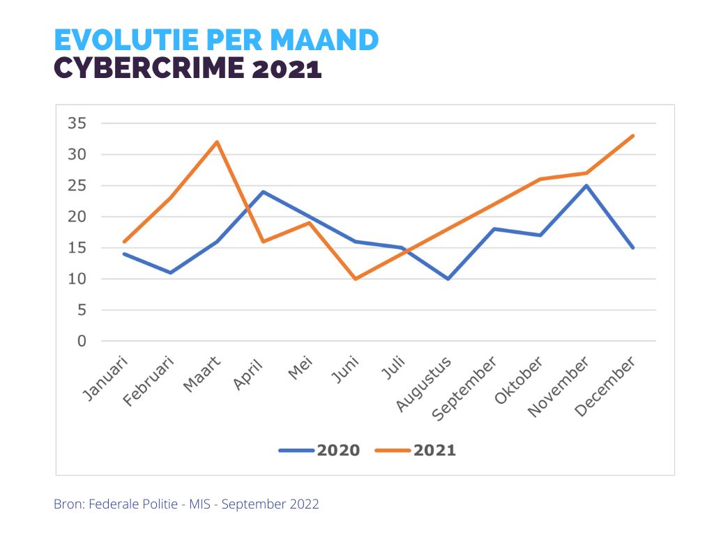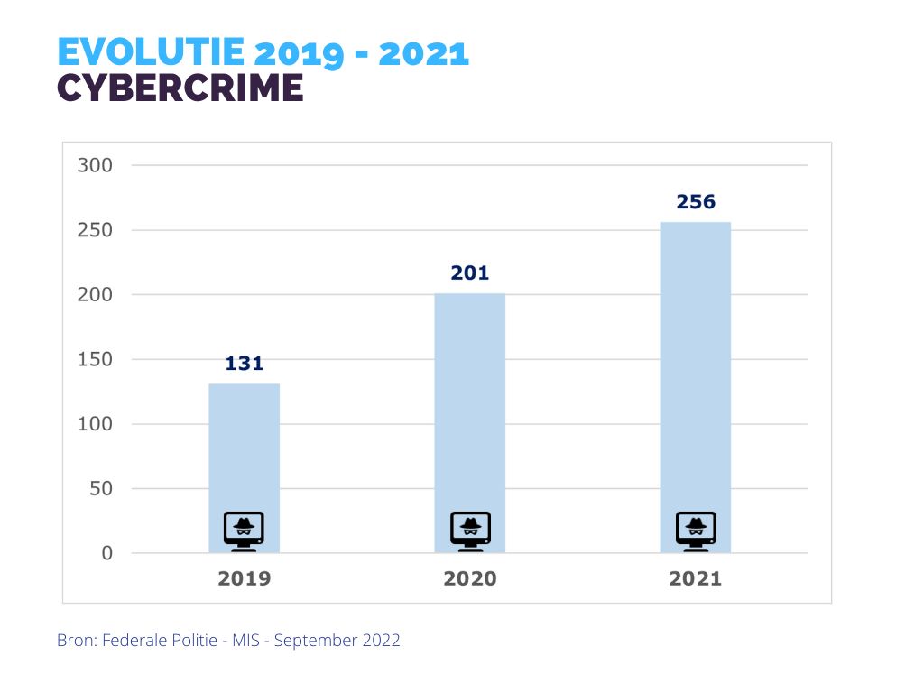 Het aantal inbreuken “cybercriminaliteit” kende een stijging met 34,03% t.o.v. 2020.