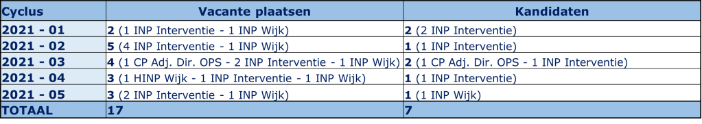 In 2021 werden vijf mobiliteitscycli gepubliceerd. Binnen de politiezone Pajottenland werden in totaal 17 plaatsen opengezet via mobiliteit. Hierop kwamen 7 kandidaten af.