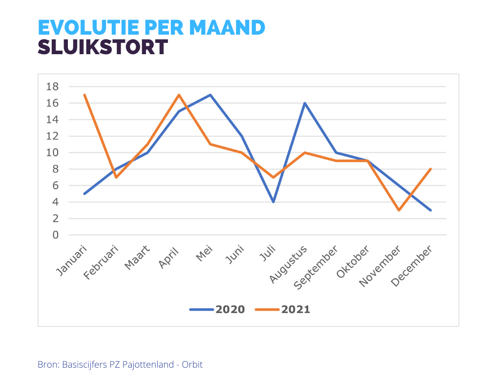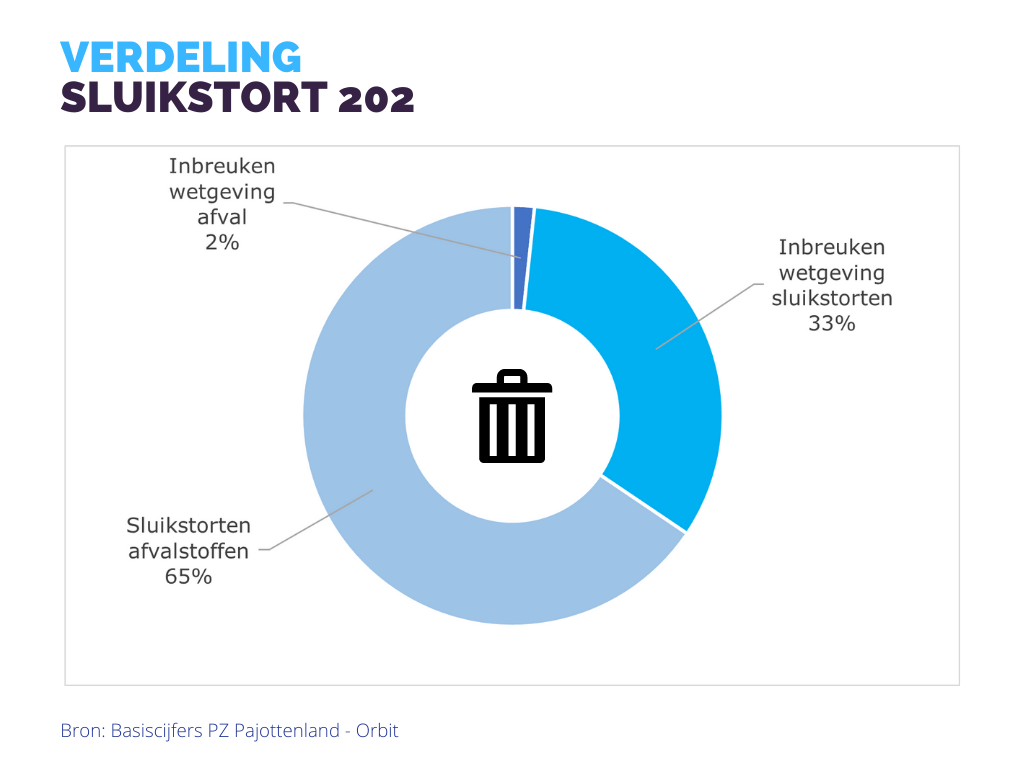 Het aantal inbreuken “sluikstort” bleef nagenoeg stabiel (+3,48 % t.o.v. 2020).