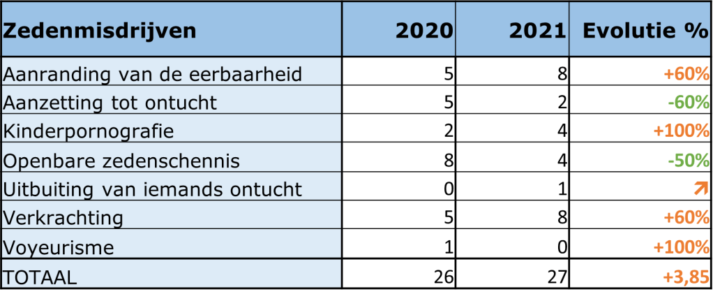 Zedenfeiten Overzicht Oorzaken & Verklaringen Het aantal zedenfeiten bleef nagenoeg gelijk t.o.v. 2020.